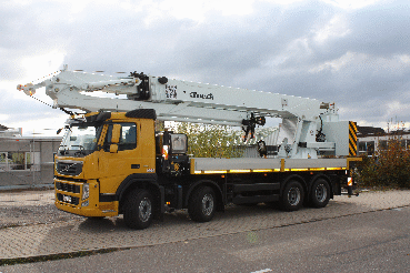 Montiert auf 4achs - LKW mit 36 t Gesamtgewicht erreicht der Kran eine maximale Arbeitshöhe von 58 m. Optimal für Großbaustellen oder Arbeiten in Großstädten wo es nicht immer möglich ist den Kran direkt neben dem Gebäude zu platzieren.